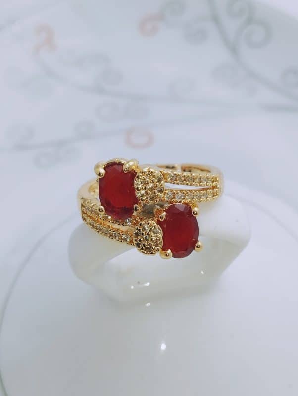 Carat Gold plated cubic zirconia Ring – light siam Red