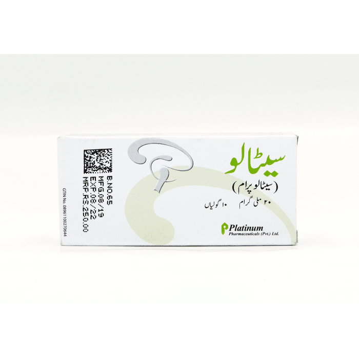 Citalo 20mg Tablet contains Citalopram as its active ingredient, belonging to the class of selective serotonin reuptake inhibitors (SSRIs). It is primarily used in the treatment of depression and other mood disorders by restoring the balance of serotonin, a neurotransmitter, in the brain.