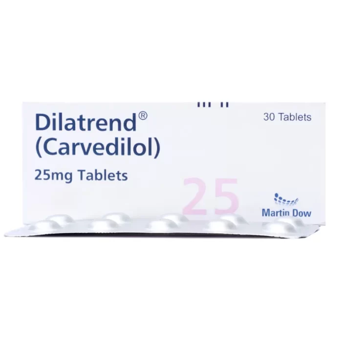 DILATREND TABLET 25MG contains the active ingredient Carvedilol, which belongs to a class of medications known as beta-blockers. It is formulated in tablet form for oral administration. Carvedilol works by blocking the action of certain natural substances in the body, such as adrenaline, which helps to lower heart rate, blood pressure, and strain on the heart.