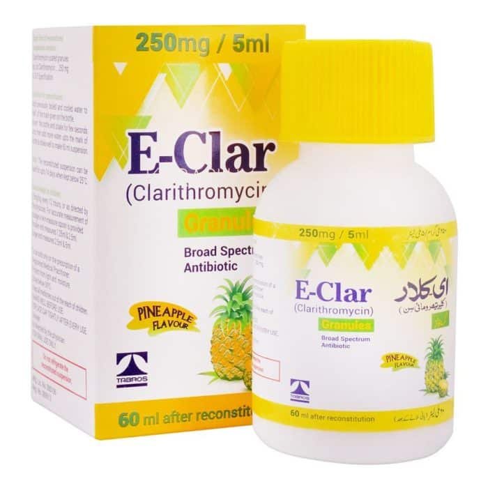 Always inform your doctor about any existing medical conditions or medications you may be taking before starting E Clar 250mg/5ml syrup to avoid potential interactions or contraindications. If you experience any severe or persistent side effects, inform your healthcare provider promptly. Regular monitoring and follow-up with the healthcare provider are crucial during treatment with this medication.