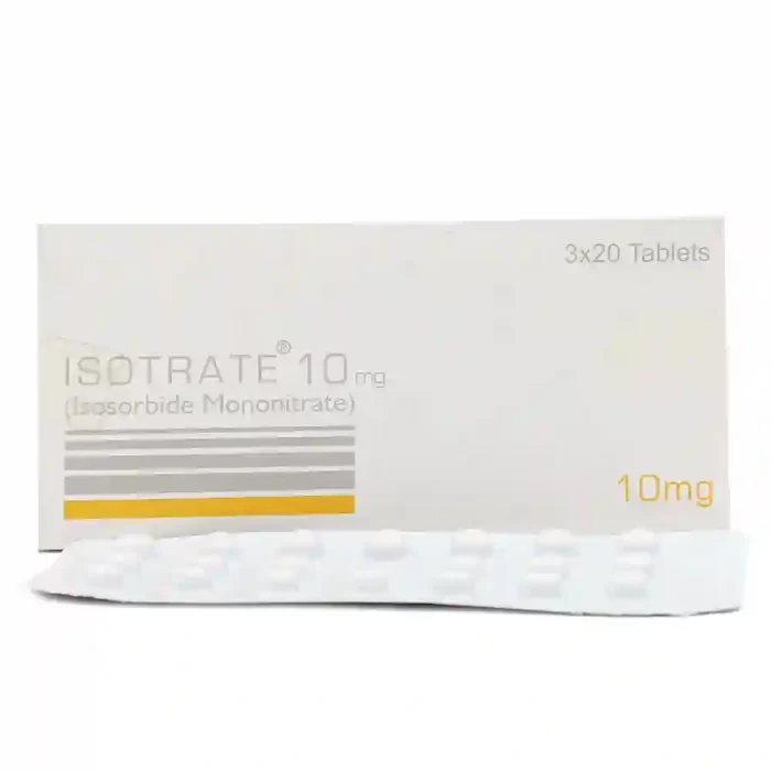 Isotrate 10mg Tablet is an oral medication available in tablet form. Each tablet contains 10mg of Isosorbide Mononitrate.