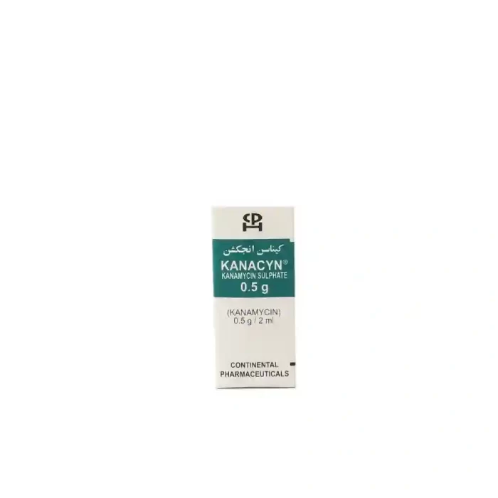 Kanacyn 0.5gm Injection contains Kanamycin, an antibiotic medication used to treat various bacterial infections. Kanamycin belongs to the class of aminoglycoside antibiotics and works by inhibiting bacterial protein synthesis, thereby killing susceptible bacteria and treating the infection.