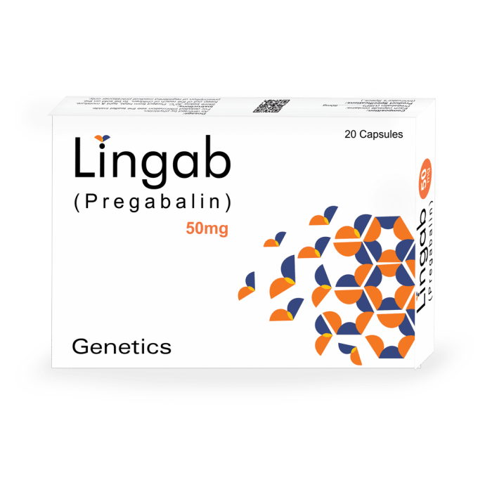 - Neuropathic Pain: Lingab 50mg Capsule is used to manage neuropathic pain associated with diabetic peripheral neuropathy (nerve damage due to diabetes), postherpetic neuralgia (nerve pain following shingles), and other chronic pain conditions.