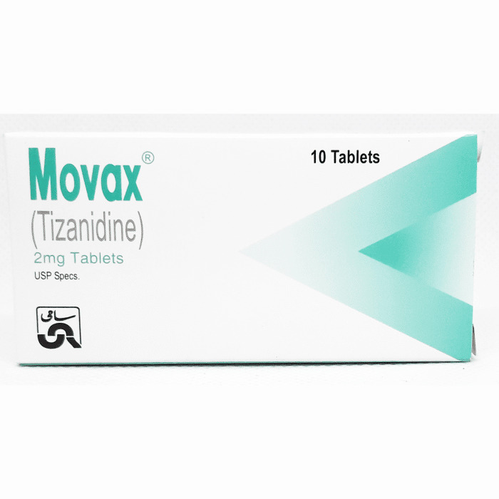 Movax 2mg Tablet contains Tizanidine, which is a centrally acting muscle relaxant used to alleviate muscle spasms and spasticity associated with certain medical conditions. It works by blocking nerve impulses that cause muscles to tighten, thereby promoting muscle relaxation.
