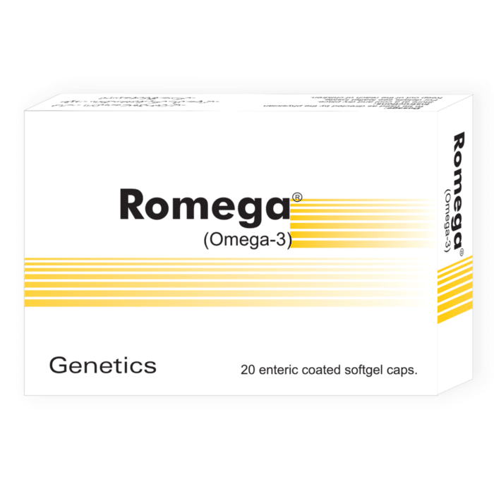 Romega Capsule contains Omega-3 Acid Ethyl Esters as its active ingredient. Omega-3 fatty acids are essential polyunsaturated fats that are important for overall health and well-being. They are primarily found in fatty fish and certain plant sources. Omega-3 Acid Ethyl Esters are concentrated forms of these fatty acids, typically derived from fish oil. Romega Capsule is formulated to provide a convenient source of Omega-3 fatty acids to support cardiovascular health and other physiological functions.