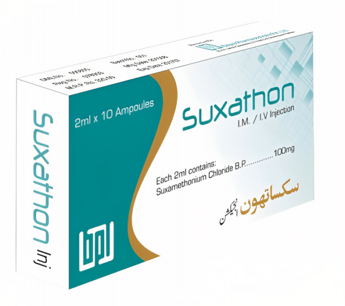 Suxathon 2ml Injection is administered by trained healthcare professionals, usually as an intravenous (IV) injection. The dosage and administration technique may vary depending on the patient’s age, weight, medical condition, and the type of procedure being performed. It is essential to follow the dosage and administration instructions provided by the anesthesiologist or healthcare provider for safe and effective use.